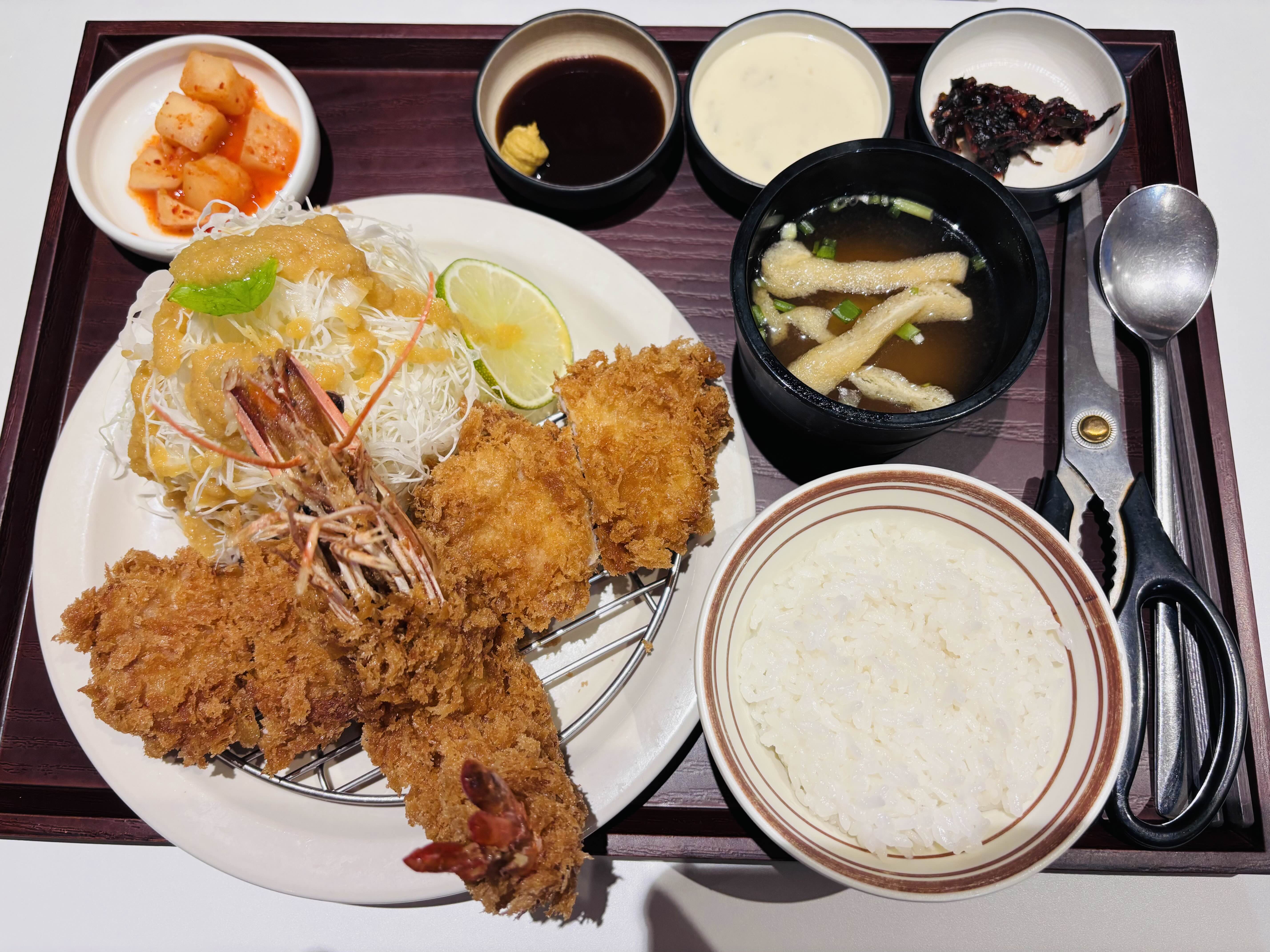 부드럽고 바삭바삭한 히레카츠와 살이 통통하니 고소한 새우카츠 둘다 맛볼 수 있었어 잘 시켰다 싶었음.