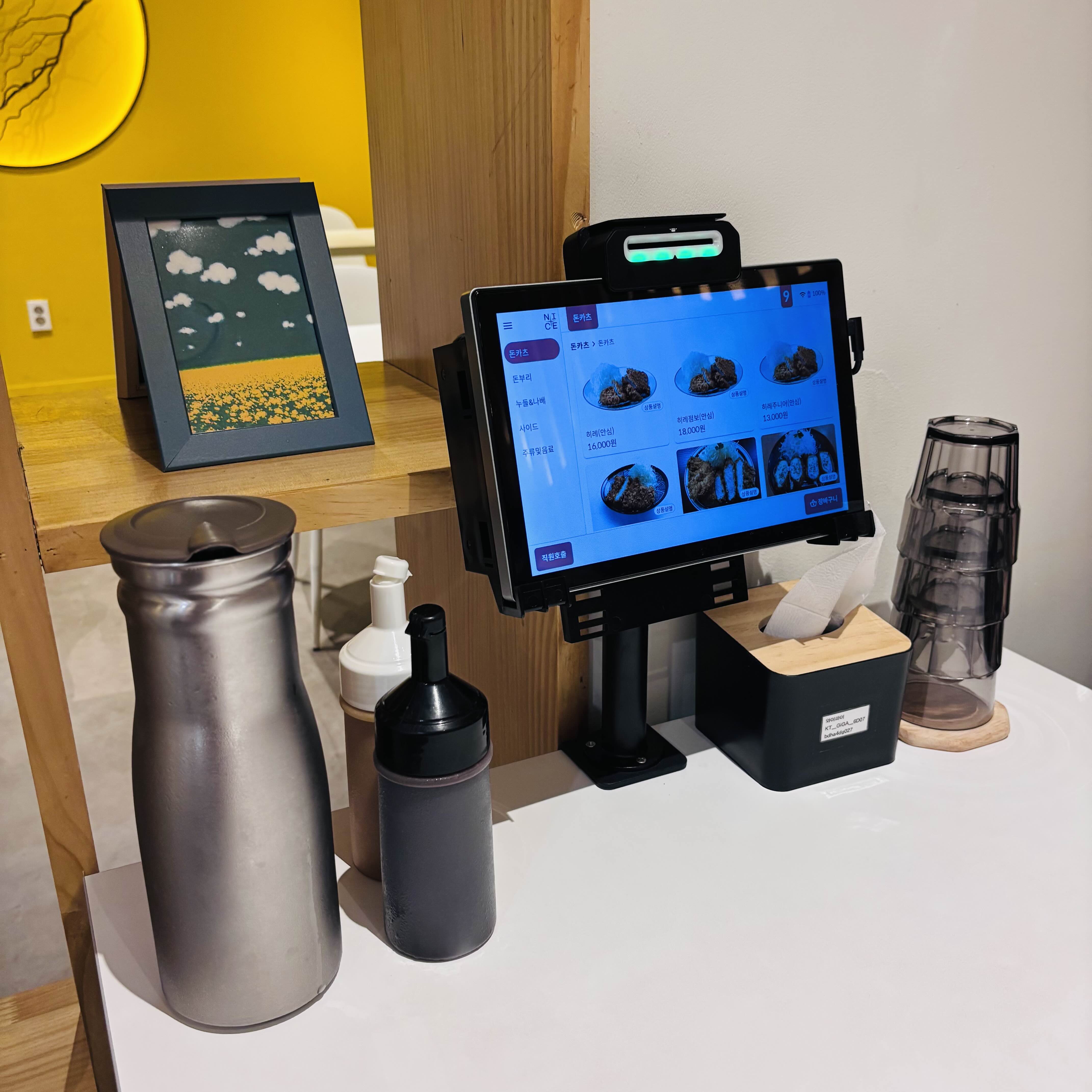 이제 자리마다 있는 테블릿으로 주문하고 결제하는 방식이다.