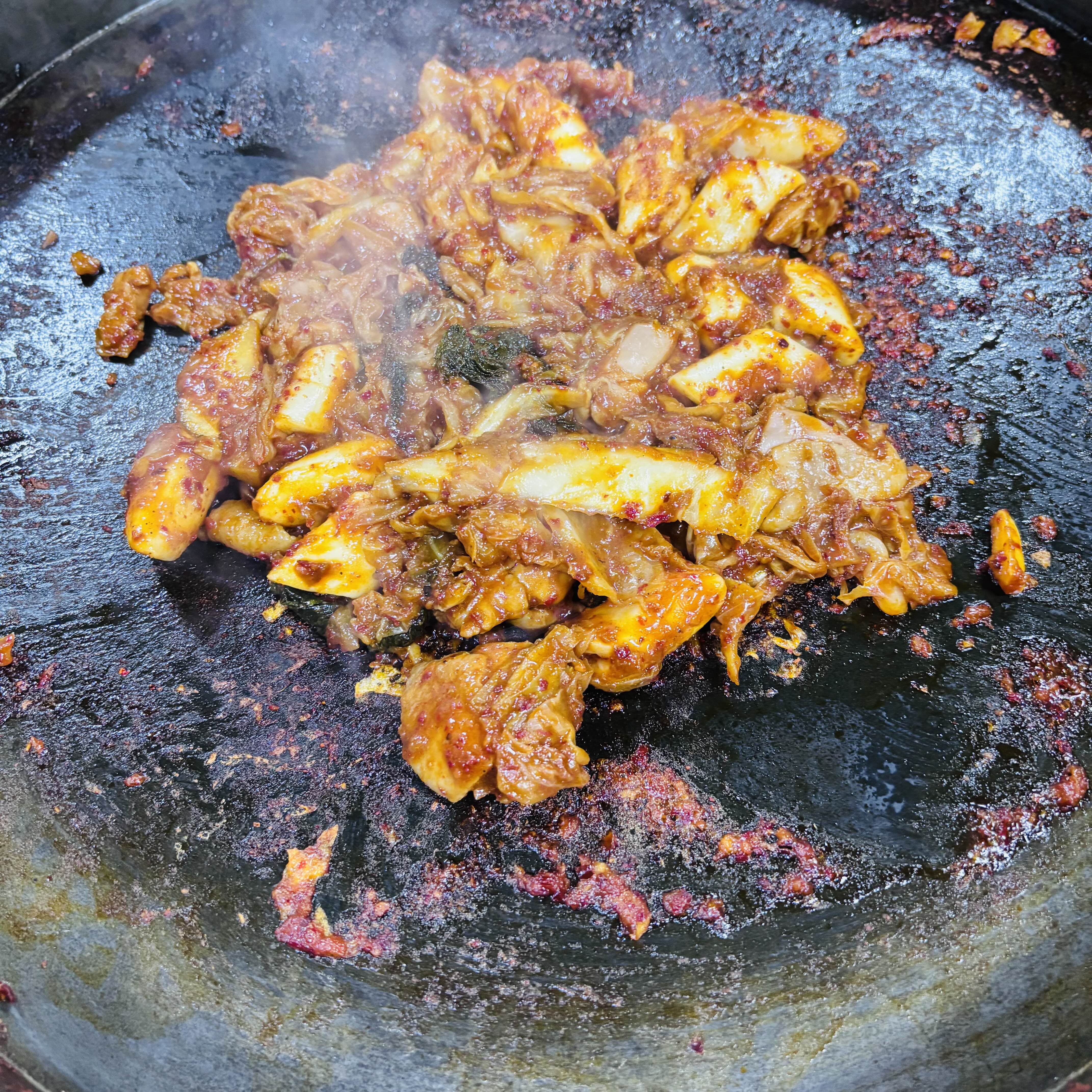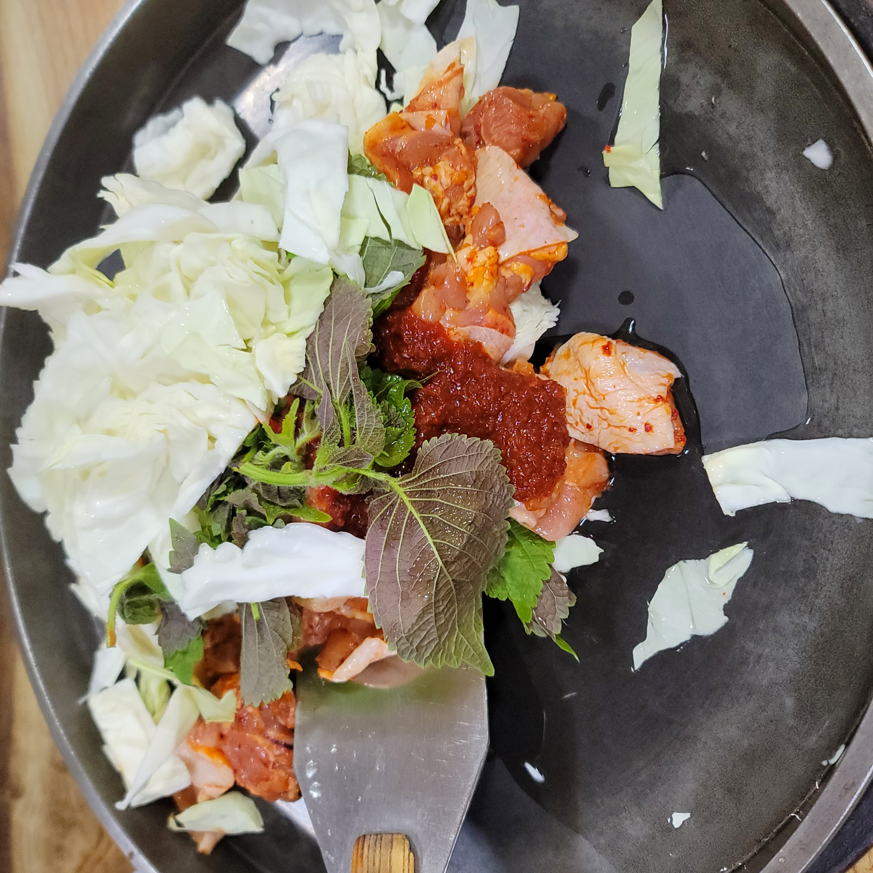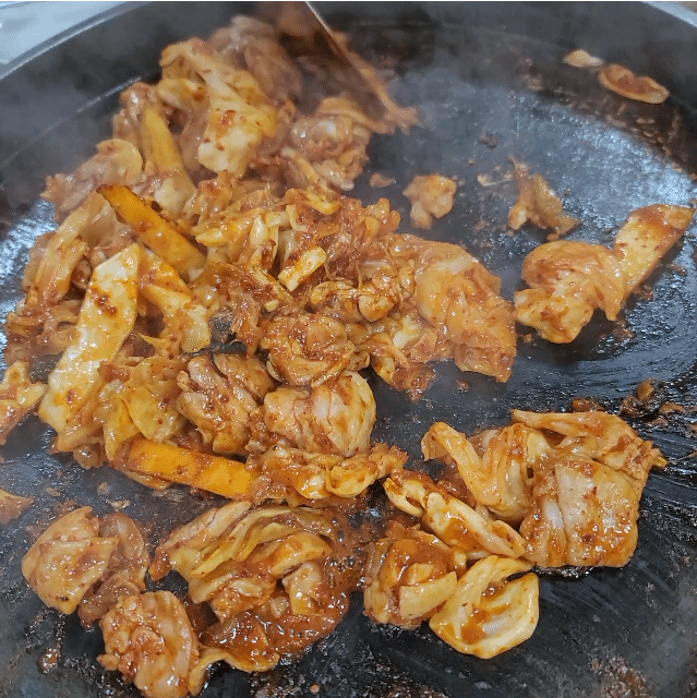 2. (정신없어 보여서 다른 데 가려니) 반찬도 안 나온 상태에서 직원A가 닭갈비 일단 불판에 투하하고 가심