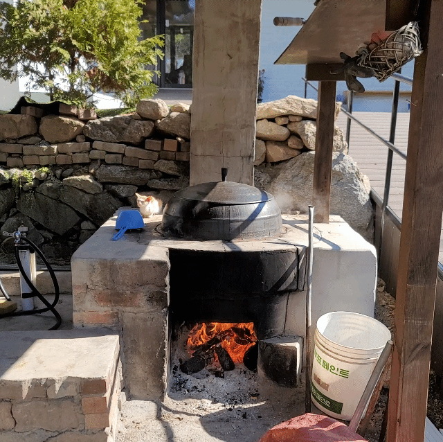 식당 바깥 부뚜막 위에 새끼고양이가 볕을 쬐고 있고 참 평화롭고 따뜻한 풍경이었다.