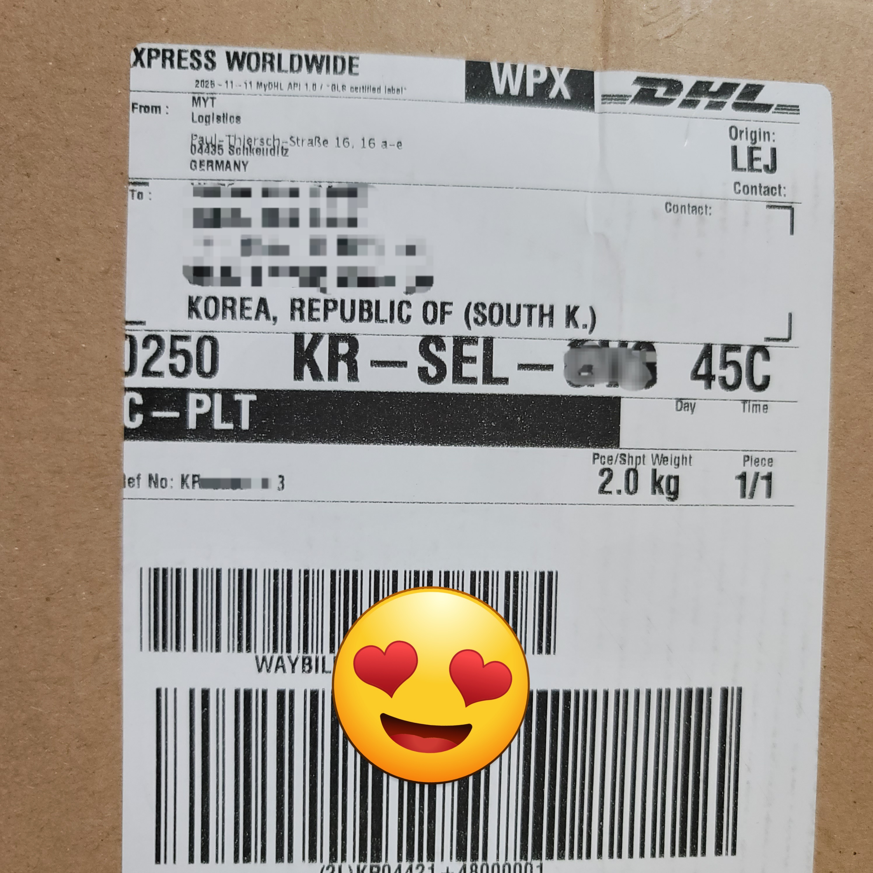 아무튼 구매하고 바로 출고되어 이틀 만에 한국 도착;; 독일 답지 않은 빠릿빠릿한 발송시스템이다 ㅋㅋㅋ 오전에 부가세 14만 원 정도 내니 오후에 택배 도착!