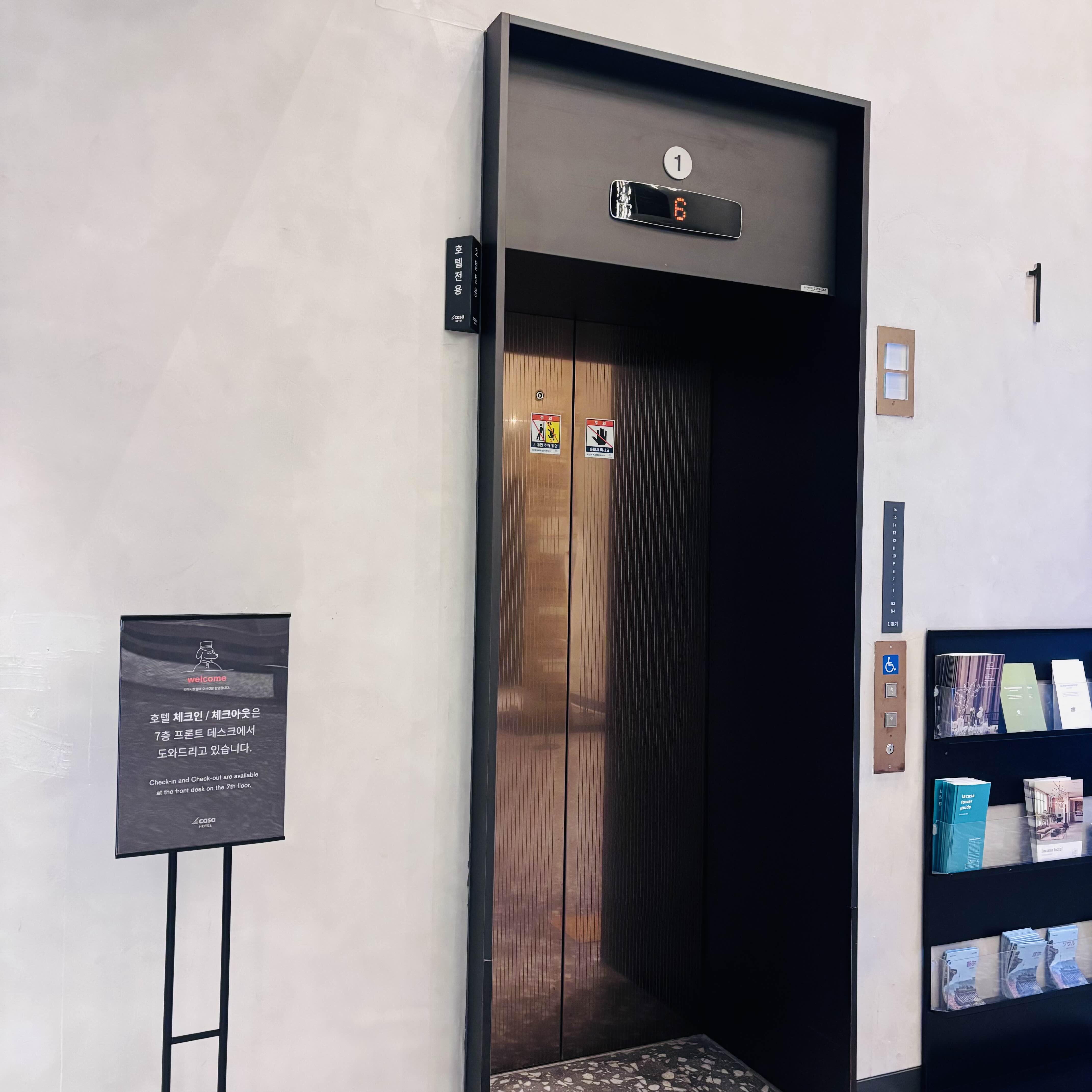 7층으로 가서 체크인. 엘리베이터 두 대인데 호텔 전용이라서 오래 기다리지 않고 다녔다.
